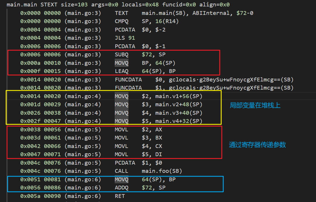 我们在Go1.16.1下执行GOOS=linux GOARCH=amd64 go tool compile -S -N -l main.go反汇编得如下: