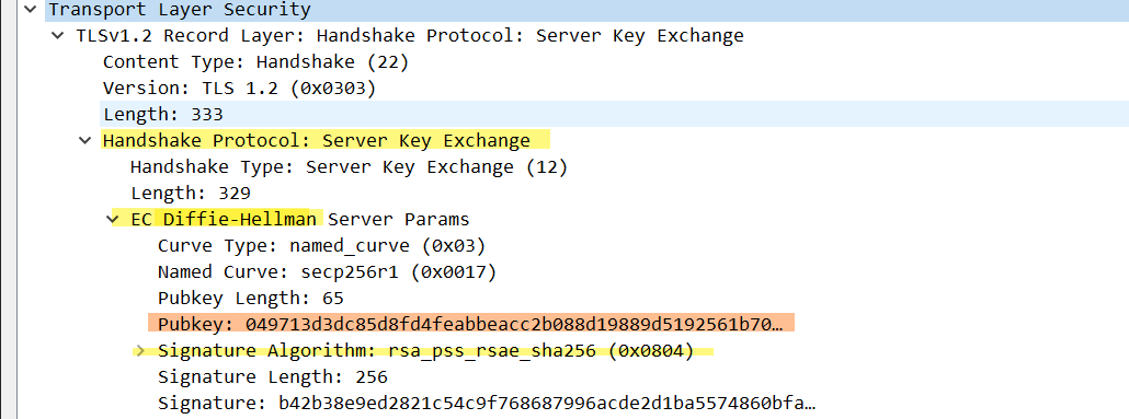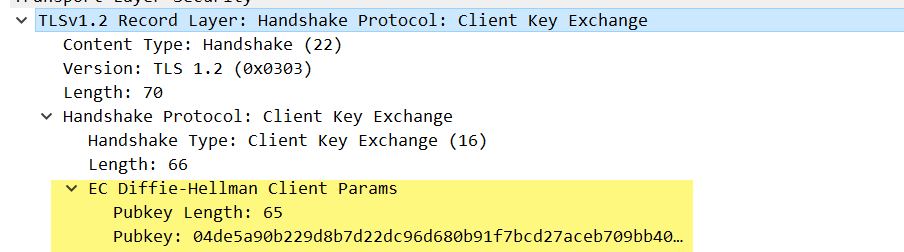 可以看到客户端计算出ECDH的公钥发送给服务器端,用于生成预备主密钥。