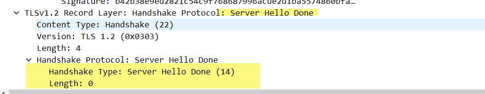 然后就是ServerHelloDone子消息,可以看到该子消息的长度为0: