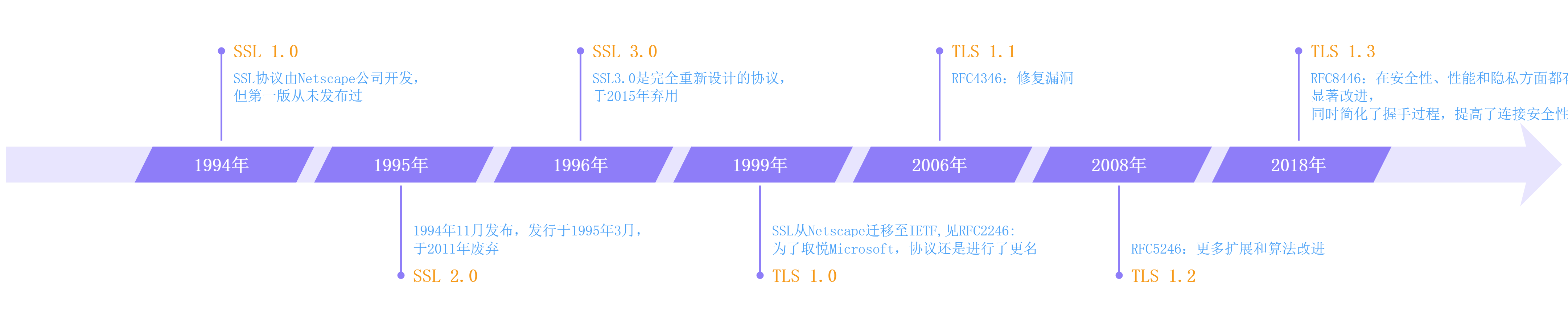 2006年和2008年,TLS 进行了两次升级,分别为 TLS1.1 和 TLS1.2 ,进一步改进了安全性和性能,并增加了新的加密算法和协议扩展;
